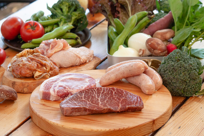 「伊豆牛」や、「ルイビ豚」(世界的養豚研究家が飼育する富士山麓の恵みが詰まった最高級の銘柄豚)、「富士の鶏」(静岡県の養鶏業界のレジェンドが健康的飼育した鶏)、お野菜も県内産の産地直送をご提供します。